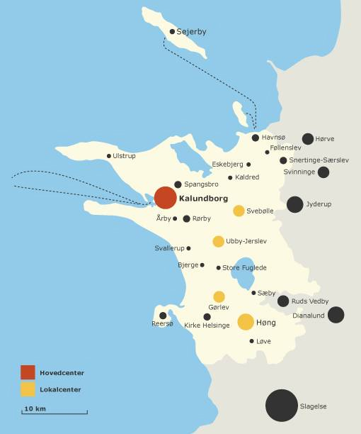 2.1.1 Bymønsteret for Kalundborg kommune beskriver den grundlæggende rollefordeling mellem kommunens byer og landsbyer.